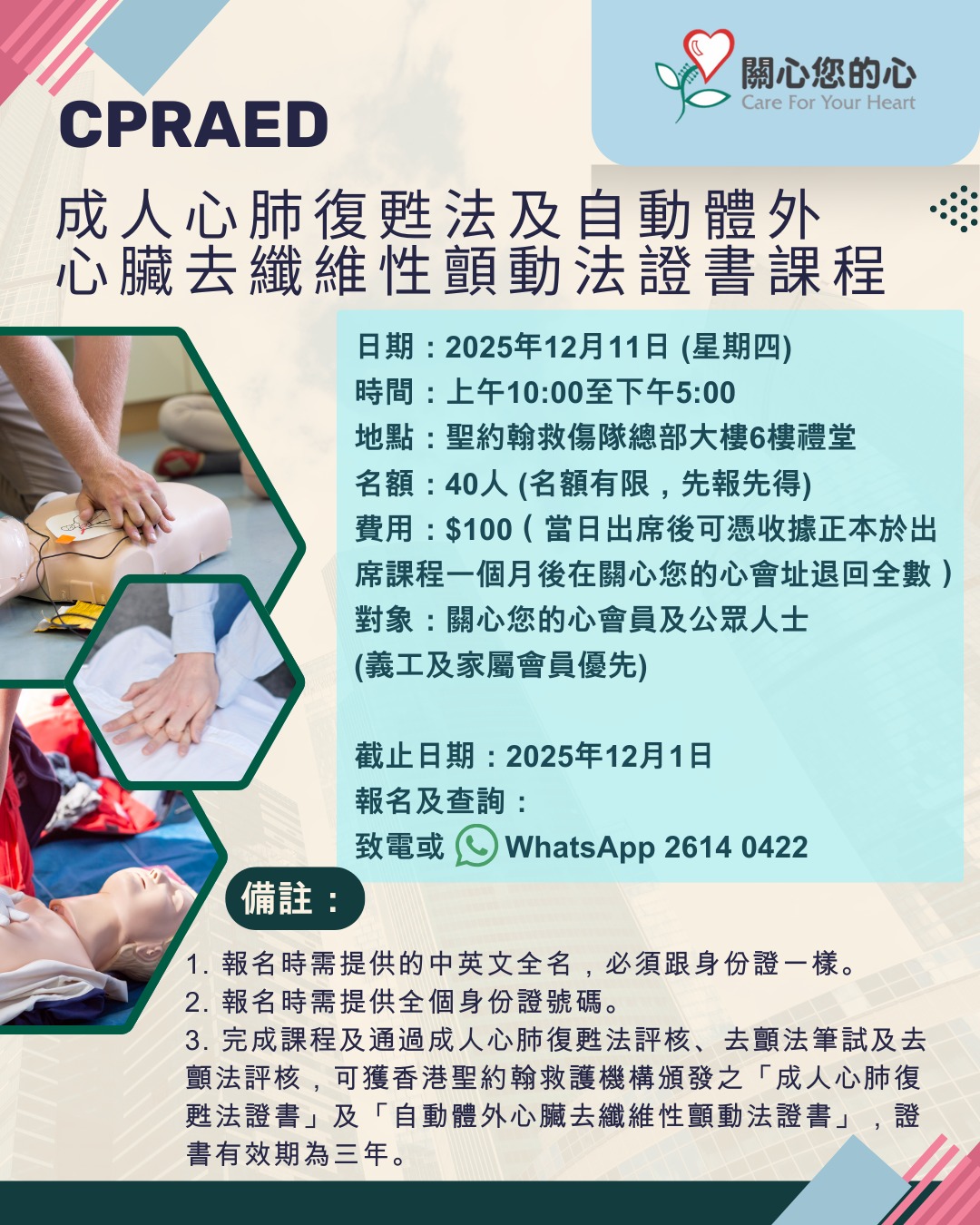 關心您的心會員及公眾人士(義工及家屬會員優先)
