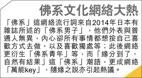 「佛系」最近成為熱門話題,中大醫學院近日則發表一套「佛系治抑鬱法」,指有助改善輕度抑鬱症患者的病情,而對於一般都市人常見的焦慮情緒和抑鬱徵狀也有幫助;有病友更透過佛系「靜觀」,成功擺脫長期受困的失眠問題。