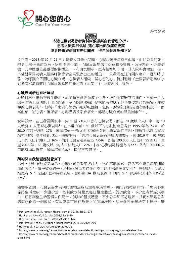 調查顯示香港人對心臟衰竭缺乏認識
