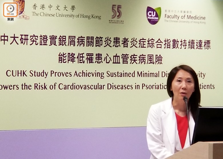 香港中文大學醫學院最新研究證實,銀屑病關節炎患者的炎症綜合指數如能持續達標,即病情持續於低活躍水平長達12個月,使病人的發炎指數持續維持在最低水平,他們罹患心血管疾病的風險會因而降低。
