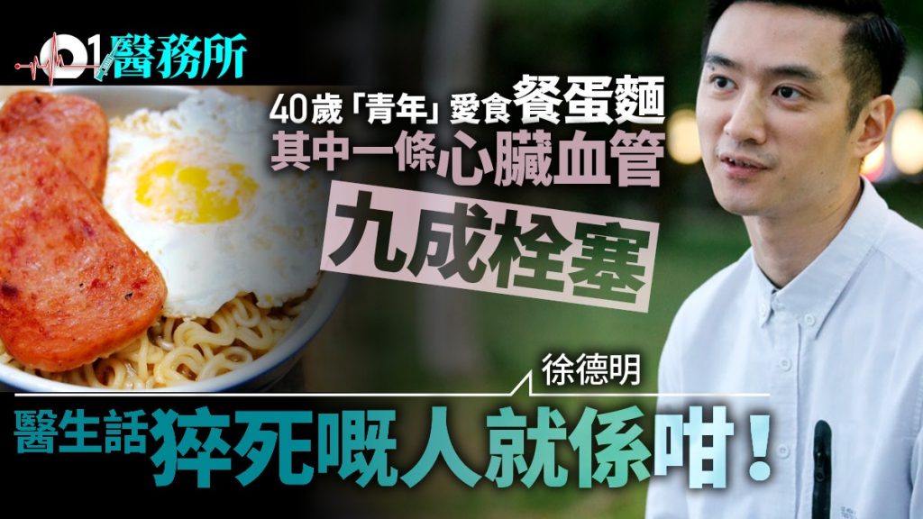 痛楚延續了一個月後,徐德明才意識到有需要求診,他向心臟科專科醫生梁達智求醫,在完成初步心電圖檢查後,醫生立刻轉介他至私家醫院做詳細檢查,最後發現他患上冠心病,心臟三條主要血管栓塞,當中左前降支動脈(LAD)有90%阻塞,左迴旋支動脈及右冠狀動脈亦分別有五成及三成阻塞,「醫生說猝死的人就是這種情況!」