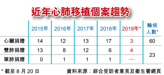 1歲多小智愷因患罕見限制性心肌病,早前獲有心人捐出親人遺心移植續命,事件稍為喚起港人對器官捐贈的關注,事後瑪麗醫院亦曾接獲2、3名有心人致電查詢。惟今年至8月20日本港只進行了3宗心臟移植個案,去年全年有17宗,迄今本港仍有60名病人等候遺心續命。