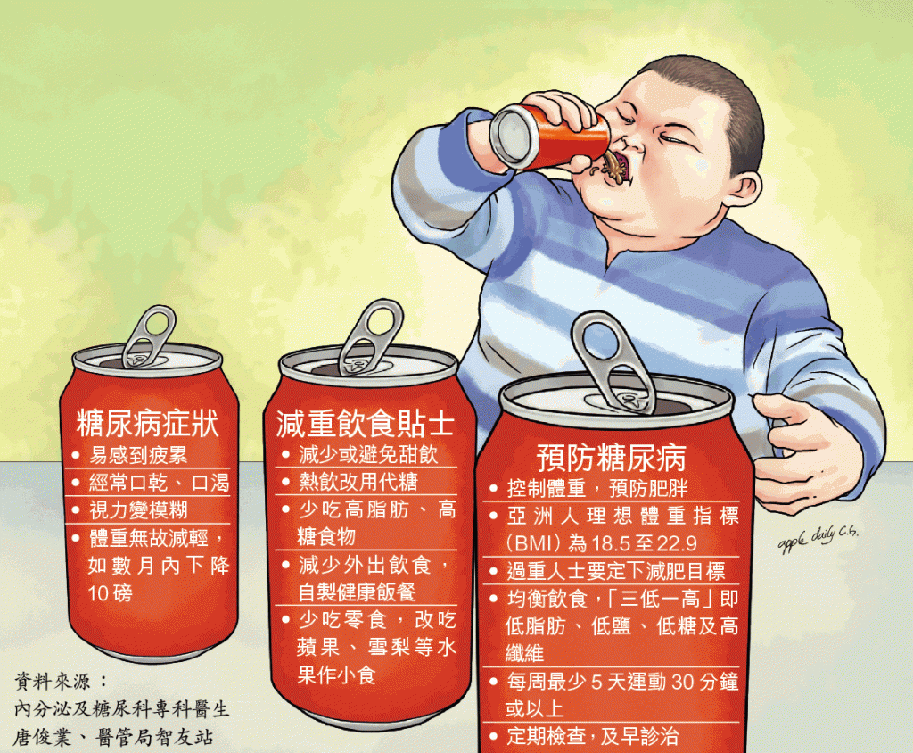 【本報訊】嗜甜的飲食習慣與不少慢性疾病息息相關,例如經常飲汽水可增加糖尿病、高血壓及心臟病風險。隨着肥胖人口增加,壯年人患上糖尿病的比例也逐漸上升。內分泌及糖尿科專科醫生唐俊業拆解,甜飲是糖攝取過量的元凶,逐步戒掉含糖飲品有助預防多種疾病。