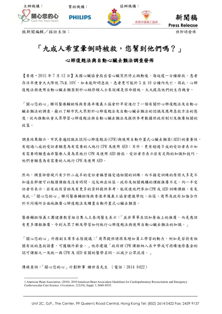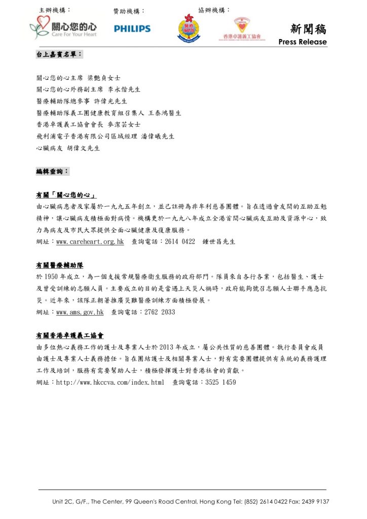 新聞稿 2013年5月22日 「關心您的心 - 心臟病友互助組織及資源中…