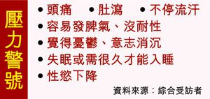 中大精神科學系主任林翠華指壓力幾乎影響整個身體運作,「所有疾病都衝着壓力而來,包括飲食失衡、腰背痛、泌尿系統問題及癌症。」